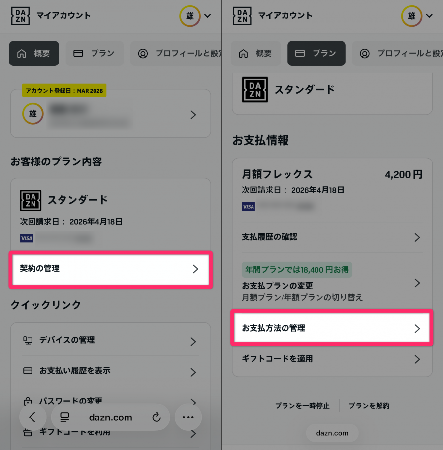DAZNの解約手続きをスムーズに完了させるために、まずは「決済方法」を確認しましょう! というのも、DAZNは登録したプラットフォームごとに専用の解約ページが用意されているからです。